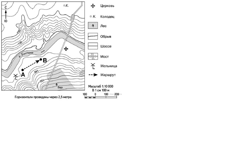 Какой объект может быть сооружён на участке, по которому проходит маршрут А–В?