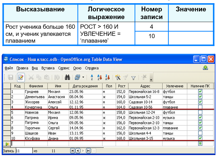 Какие значения будут выведены для записей 4 и 10 данного запроса?