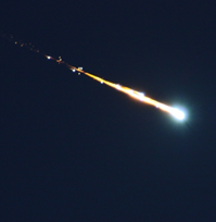 Яркий огненный шар на небе, образовавшийся в результате вторжения метеоритного тела в атмосферу Земли.