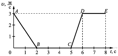 На рисунке представлен график зависимости модуля скорости v от времени t для тела, движущегося прямолинейно. Равномерному движению соответствует участок
