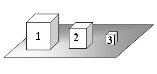 На рисунке изображены три сплошных кубика, имеющие одинаковые массы. Какой из них сделан из вещества с наименьшей плотностью?