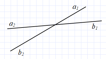 \(\angle\) (a1b1) и \(\angle\) (a2b2) - вертикальные углы