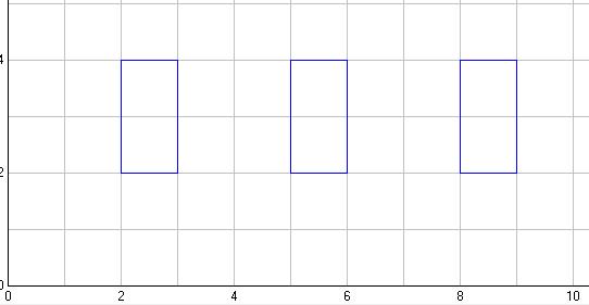 - program kv; uses Drawman; begin field(12,12); topoint(2,2);k1;topoint(5,2)k1; topoint(8,2)k1; end. procedure k1; begin pendown; onvector(0,2); onvector(1,0); onvector(0,-2); onvector(-1,0); penup; end;