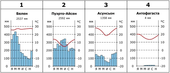 Какая климатограмма отражает климат Амазонской низменности? Укажите номер.