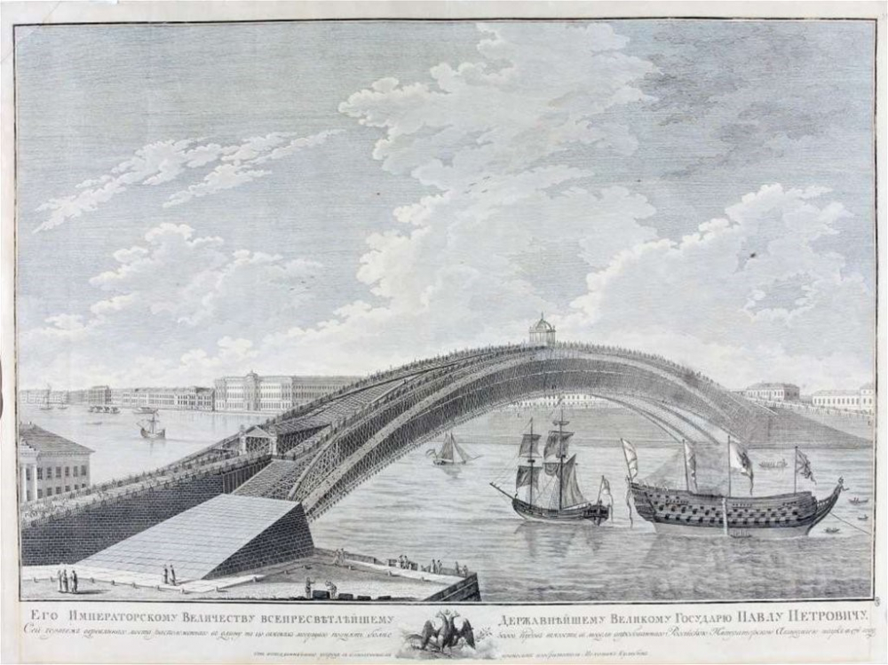 В каком городе Кулибин хотел установить мост, изображённый на рисунке?