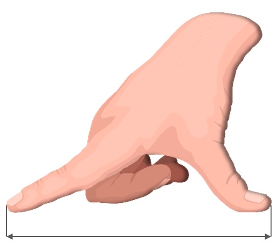 Как называют расстояние между растянутыми большим и указательным пальцами одной руки?