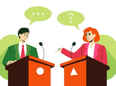 Как называется форма обсуждения, где две команды или отдельные участники высказывают разные точки зрения на одну и ту же тему? В ответе укажите только слово в начальной форме, составленное из приведённых ниже букв. Например, заключение