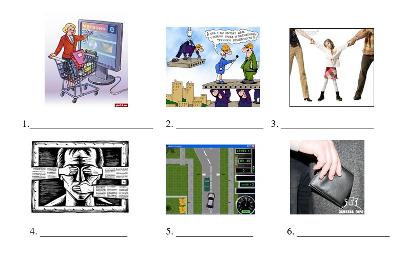 Рассмотрите рисунки. Под каждым из них подпишите отрасли права, которые регулируют изображенные общественные отношения