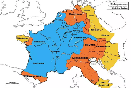 - Das Reich Karls des Großen wurde nach dem Vertrag von Verdun 843 noch größer.