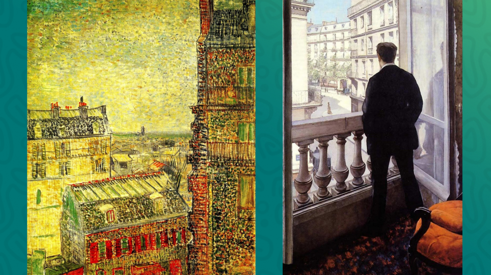 Давайте посмотрим на картины этих художников. «Вид на Париж из комнаты Винсента на улице Лепик» и «Молодой человек у окна». Несмотря на то, что на полотнах изображён Париж, одна и та же ситуация и даже возможно одно и то же место действия - они очень разные по манере своего исполнения. Отметьте авторов этих плотен.