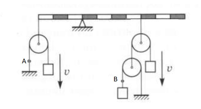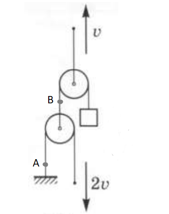 Подвижный блок тянут вертикально вверх со скоростью 1 м/с. Как и с какой скоростью движется груз прикрепленный к веревке?