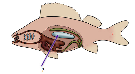 Какой орган обозначен знаком вопроса на рисунке "Внутреннее строение окуня"?