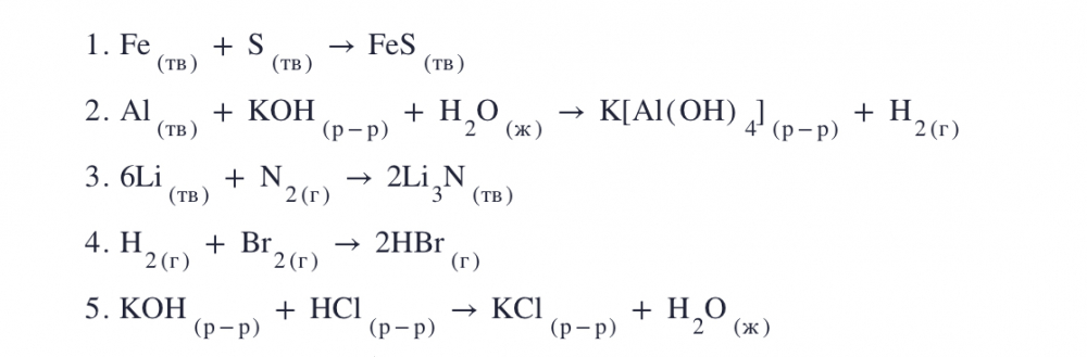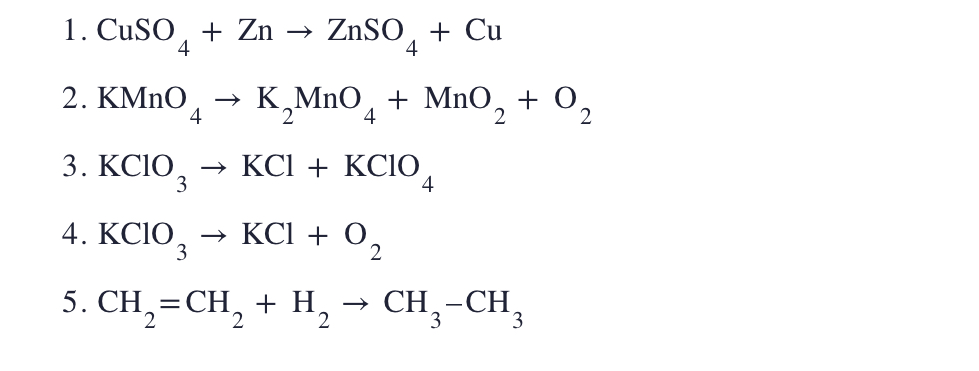 Из предложенного перечня выберите все реакции, которые являются окислительно-восстановительными.