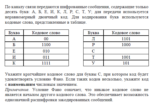 1)Неравномерное кодирование, условие Фано
