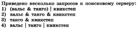 Укажите в ответ номера запросов в порядке возрастания количества найденных страниц. Номера указывать без разделителей и пробелов.