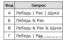 Для обозначения логической связки «ИЛИ» в запросе используется символ «|», а для логической связки «И» — «&»: