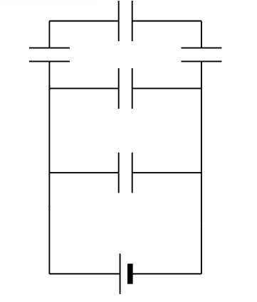 на рисунке приведена электрическая схема. Все конденсаторы в цепи одинаковы и имеют емкость 30 мкФ каждый. Найдите общую емкость всей батареи конденсаторов. Ответ дайте в мкФ.