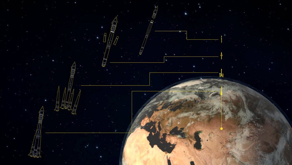 - третья ракета выходит за пределы атмосферы и приобретает космическую скорость