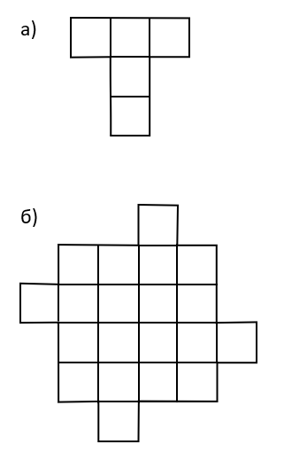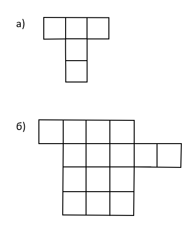 На какое количество фигур в форме буквы Т (рис. а) можно разрезать фигуру, изображённую на рисунке б?