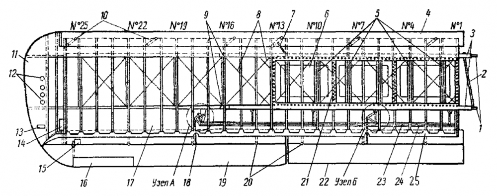 - К нервюрам № 3, 8, 13, 16, 21, 26
