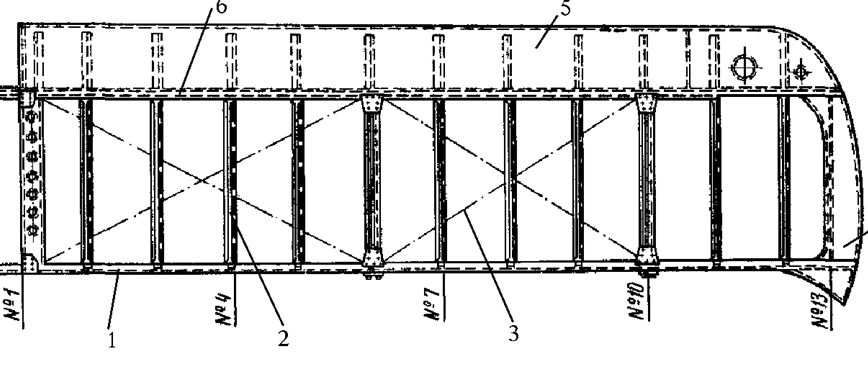 - двух лонжеронов, 5 нервюр, двух раскосов и металлической обшивки.