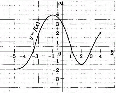 Область определения функции f — отрезок [–5; 4]. Найдите нули функции.