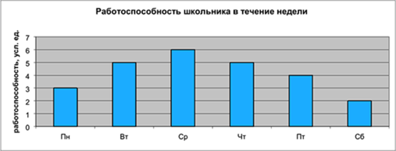 - Самая высокая работоспособность в понедельник.