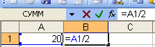 - содержащая формулу, включающую в себя имя ячейки, в которой выполняется ввод данных