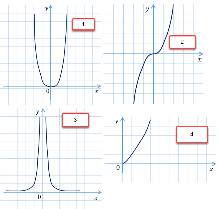 Укажите номер рисунка, на котором изображен график нечётной функции.
