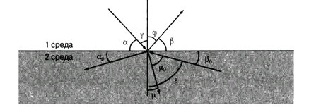 - угол между падающим лучом и поверхностью.