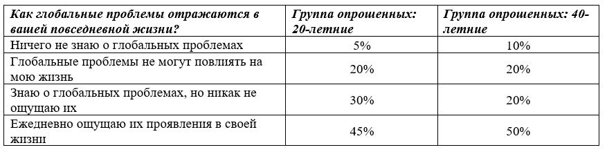 - Люди имеют разные точки зрения относительно влияния глобальных проблем на их жизнь.