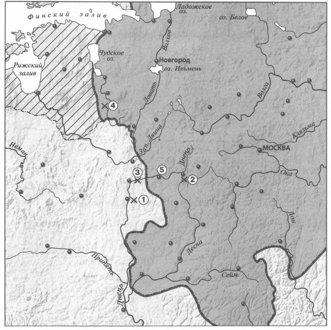 Укажите год, когда к Российскому государству был присоединён город. обозначенный на карте цифрой 5.