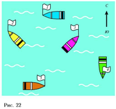 Определи, в каком направлении плывут лодочки. Установи соответствия.