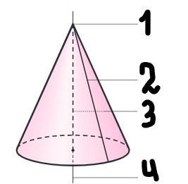 Если конус получился вращением прямоугольного треугольника, по оси проходящей через меньший катет, то найдите чему равен радиус, высота и образующая данного конуса. Катеты прямоугольного треугольника равны 3 и 4, гипотенуза 5.