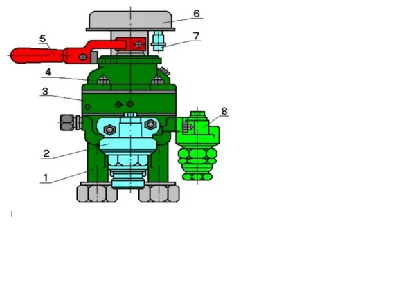 Каково устройство крана машиниста 394? Перечислите по цифрам от 1-8 ..