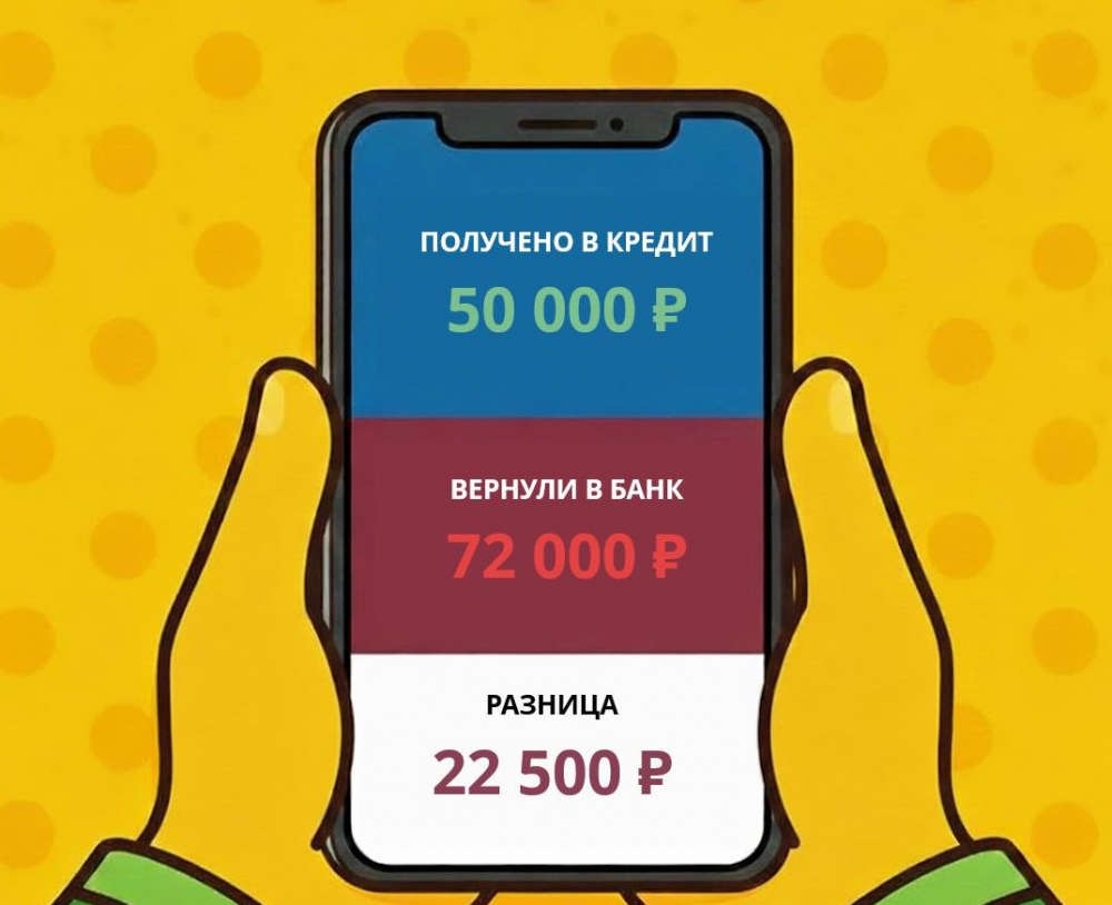 - Разница между полученной и возвращенной суммой, которая называется переплатой.