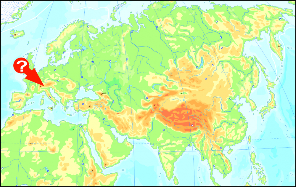 Назовите хребет обозначенный на карте вопросительным знаком.