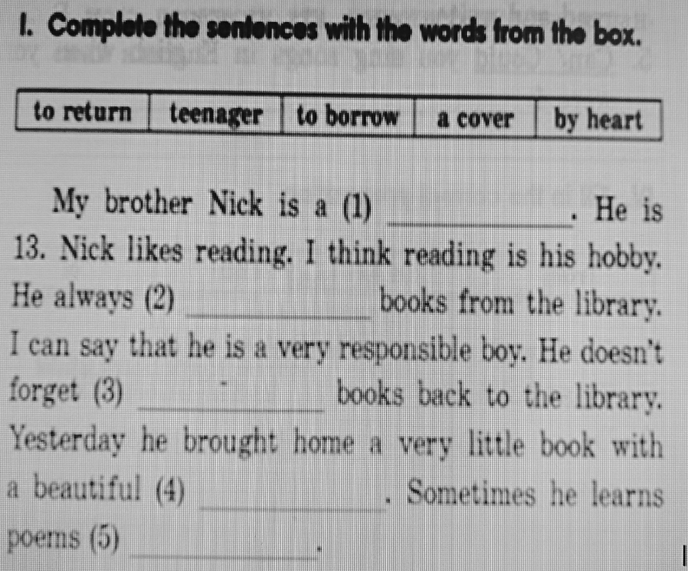 Вставьте пятое слово.