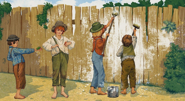 - В книге «Приключения Тома Сойера» Том Сойер живёт с тётей Полли.