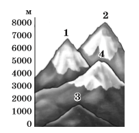 На схематичному рисунку гора Джомолунгма (Еверест) позначена цифрою: