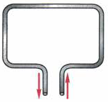 На рисунке изображён проволочный прямоугольник, с направлением тока в нём показанным стрелками. Пользуясь правилом буравчика, определите направление магнитных линий внутри прямоугольника и вне прямоугольника.