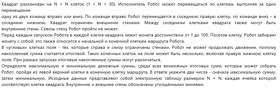 Файл В ответе укажите два числа через пробел или слитно как вам угодно на экзамене будут отбельные окна для ввода ответов. Читайте внимательно условие вначале здесь требуют вначале максимальное число а затем минимальное.