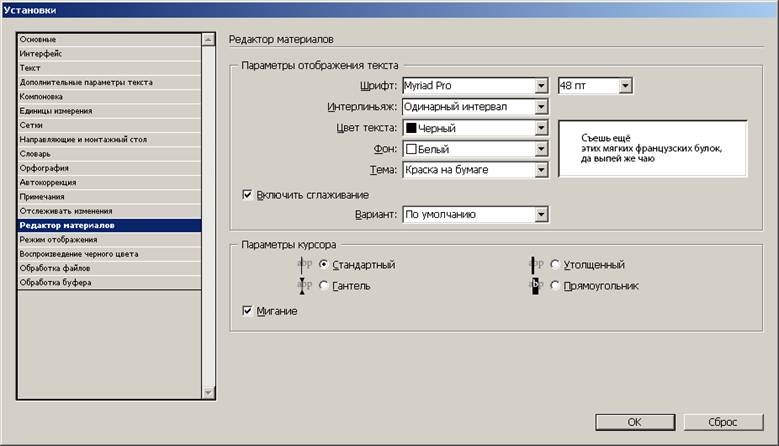 Можно ли с помощью Редактора материалов изменить кегль для текста в документе текста (см. рис.)?