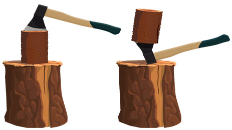 - если масса полена больше массы топора, то бить о твёрдую опору надо обухом топора.