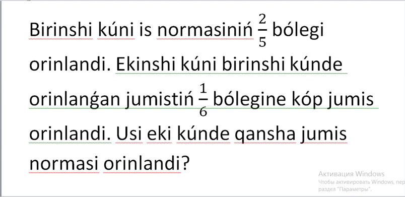Buyimniń baxasi 23400 som edi. Buyim aldin bul baxaniń 2/15 bólegine arzanlasti. Málim waqit otkennen soń, jańa baha óziniń 2/15 bólegine qimbatlasti. Endi buyimniń baxasi neshe som bolip qaldi?