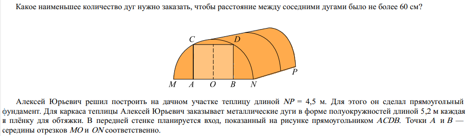 Найдите примерную ширину MN теплицы в метрах. Число π возьмите равным 3,14. Результат округлите до десятых