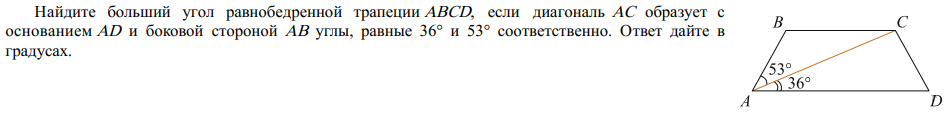 Основания равнобедренной трапеции равны 50 и 104, боковая сторона 45. Найдите длину диагонали трапеции.