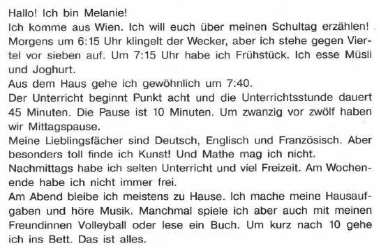 - Um zwanzig vor acht geht Melanie zur Schule.
