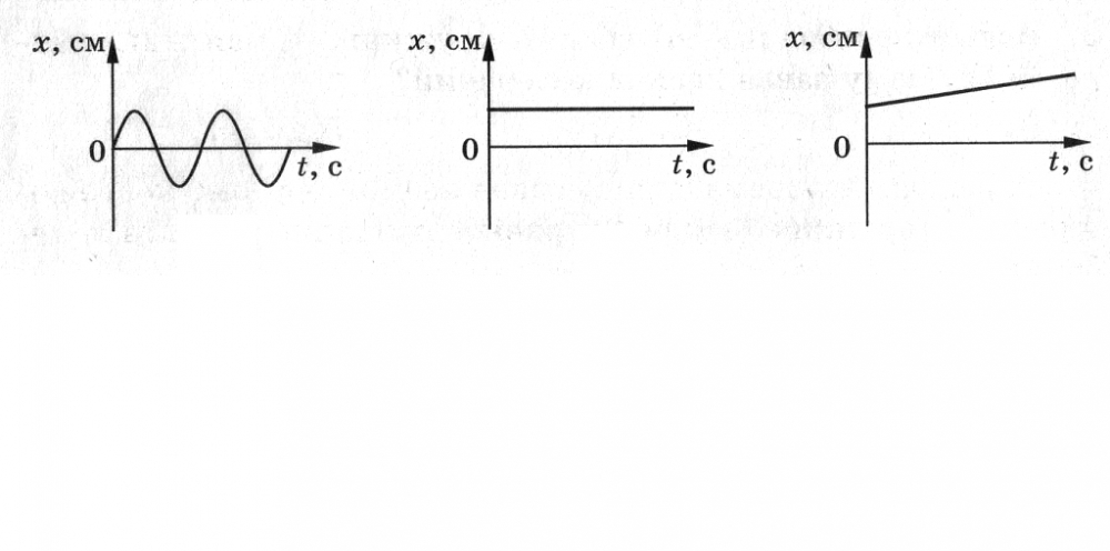На рисунке приведены графики зависимости координаты тела от времени. Какой из графиков соответствует незатухающим колебаниям тела?