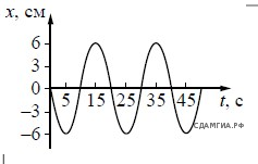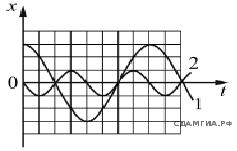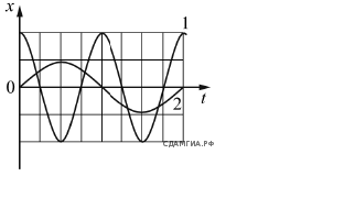 На рисунке представлены графики зависимости смещения x от времени t при колебаниях двух математических маятников. Во сколько раз период колебаний первого маятника меньше периода колебаний второго маятника.